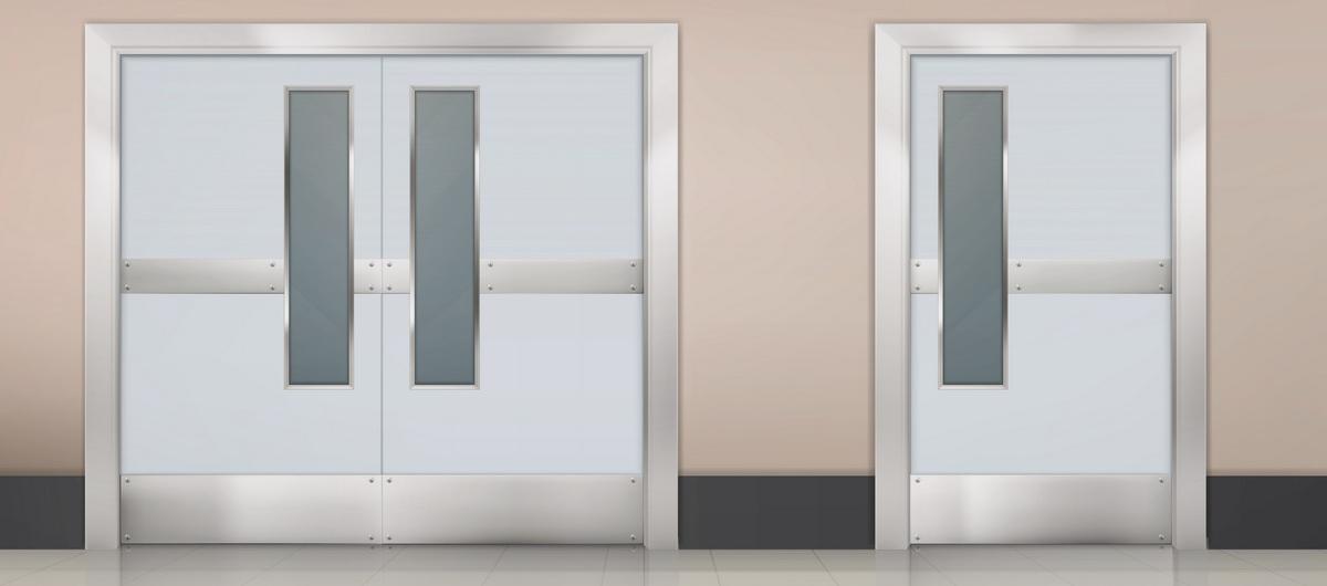 - Маятниковые двери — открываются в обе стороны, удобны для интенсивного движения