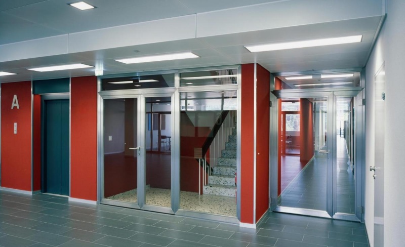 • Стеклянные — современные решения из огнестойкого стекла с металлическими профилями