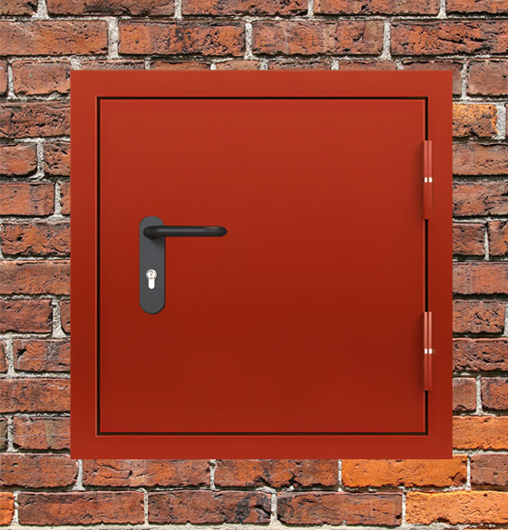 Высококачественное противопожарное оборудование - люк металлический красный промышленного класса для систем защиты объектов.