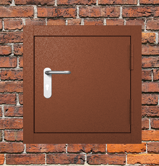 Высококачественное противопожарное оборудование - люк металлический коричневый с блестящей ручкой промышленного класса для систем защиты объектов.