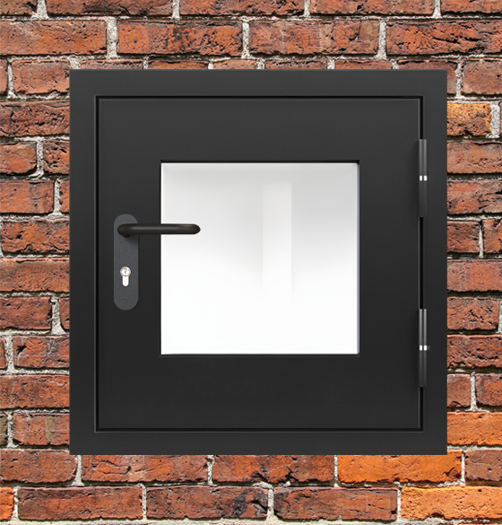 Высококачественное противопожарное оборудование - люк металлический черный с окном промышленного класса для систем защиты объектов.