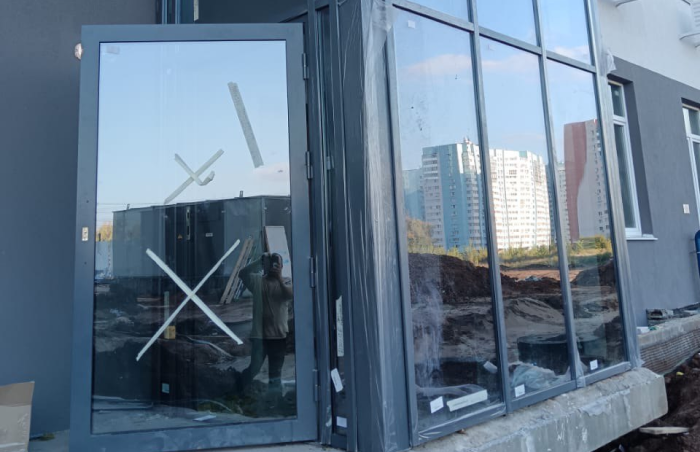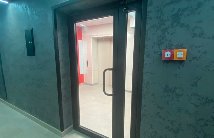 Противопожарные светопрозрачные двери EIW60. Профиль Inprof60, г. Уфа, ЖК Огни Уфы