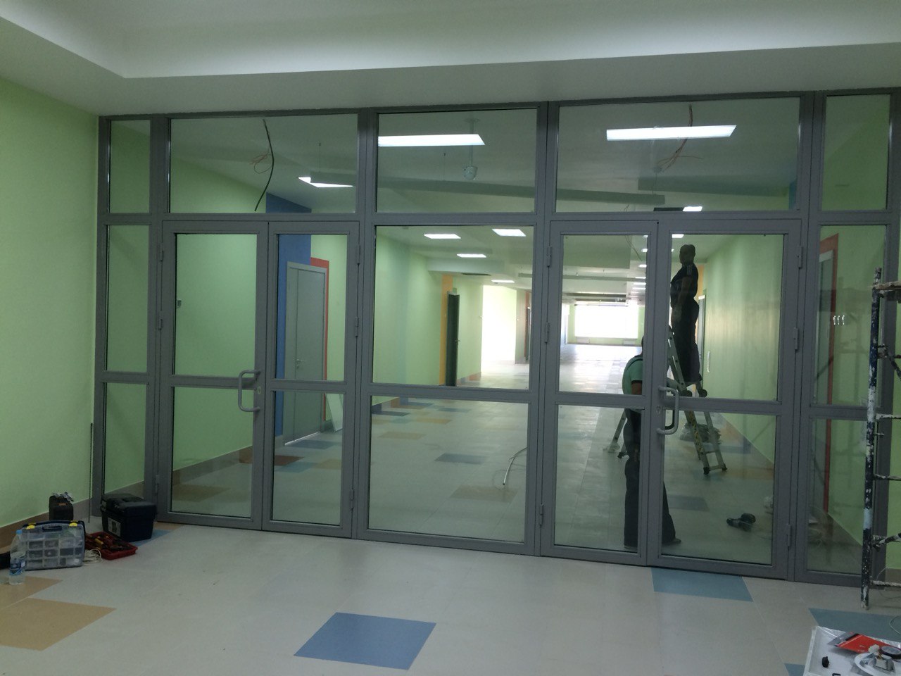 —Противопожарные светопрозрачные двери. Профиль Inprof72 - EIW60, г. Самара, Школа Кошелев